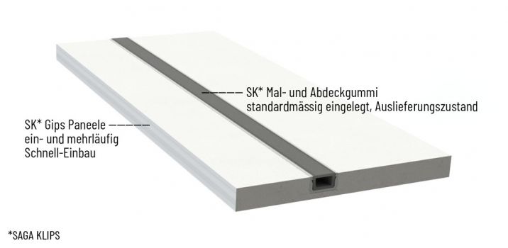 Achtung! Bei Saga Klips Gips Paneele sind folgende Funktions-Einsätze nicht möglich: SK* Star LED/Vorhanglauf opal | 200 cm | Artikel: SK-Z0010 SK* Star LED/Vorhanglauf opal | 250 cm | Artikel: SK-Z0011