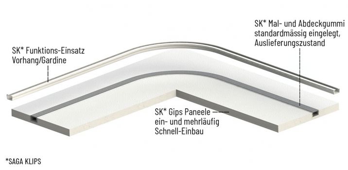 2-Läufig mit Gipsstreifen ist als Standard lieferbar, Saga Klips TP-Flex kann aber auch vom Trockenbauer auf beliebiger Position verbaut werden.