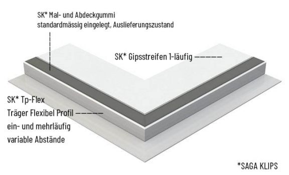 SAGA KLIPS TP-FLEX ECKELEMENT MIT GIPSSTREIFEN 1-LÄUFIG, 2x45°, AUSSEN