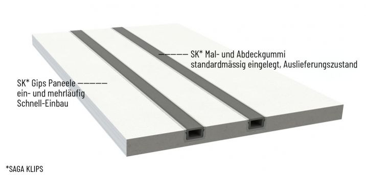 Achtung! Bei Saga Klips Gips Paneele sind folgende Funktions-Einsätze nicht möglich: SK* Star LED/Vorhanglauf opal | 200 cm | Artikel: SK-Z0010 SK* Star LED/Vorhanglauf opal | 250 cm | Artikel: SK-Z0011