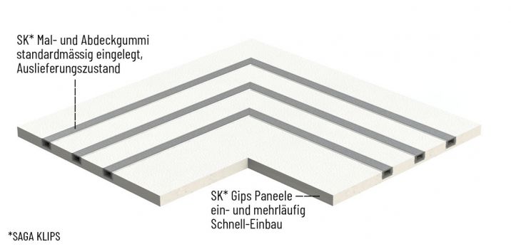 2-Läufig mit Gipsstreifen ist als Standard lieferbar, Saga Klips TP-Flex kann aber auch vom Trockenbauer auf beliebiger Position verbaut werden.